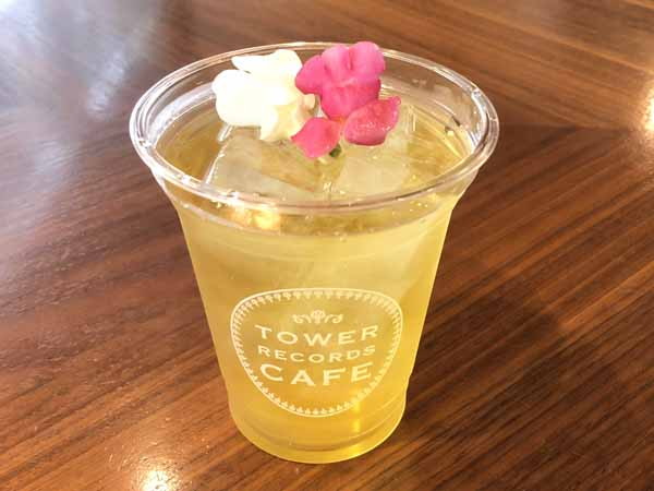 TOWER RECORDS CAFE渋谷店では、好きなドリンクに追加料金1,250円+税でスーベニアグラスを付けられる。