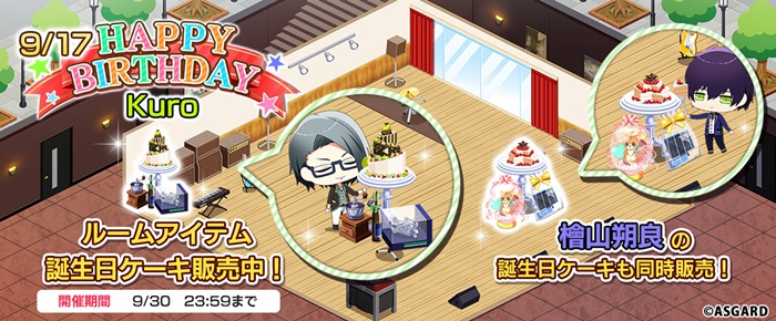 Kuroの誕生日を記念して、ルームアイテム”Kuroの誕生日ケーキ”が販売される。さらに、誕生日から遅れての登場となるが、”檜山朔良の誕生日ケーキ”も同時販売される。アニメーション付きの限定誕生日ケーキを飾り、ぜひKuroと檜山朔良をお祝いしよう。
