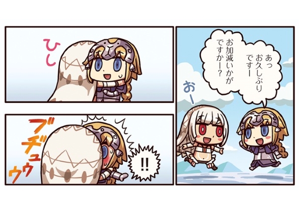 『ますますマンガで分かる! FGO』久しぶりに会ったアルテラのハグとキスに驚きを隠せないジャンヌだったが…