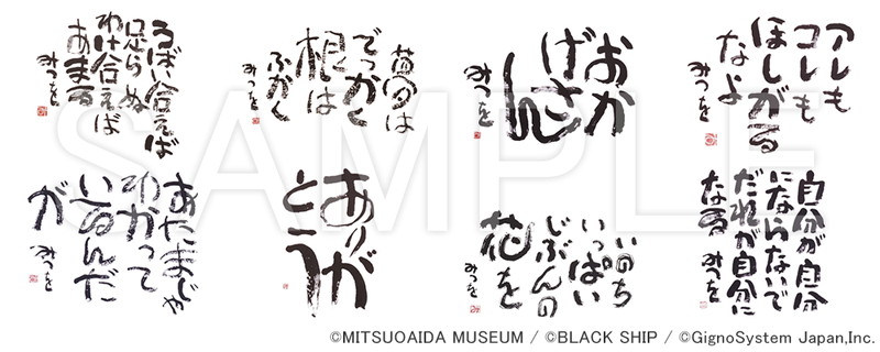 相田みつをさんの詩の持つ清廉な力と響きを、日常で使われる『LINE』スタンプの手軽さの中にも、ふと心に留まる言葉をユーザーの方々に多く届けられるよう、心を込めさせていただきました。多くの方にお使いいただけることを願っております。