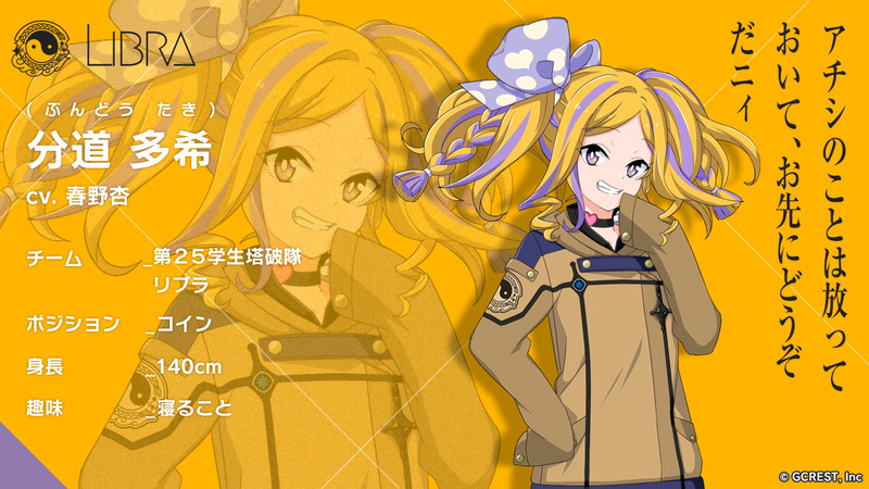 第30学生塔破隊“リブラ”は、本作の舞台となるセプター養成学校“星鳴学園”で学ぶセプター候補生が集う寮“スピカ寮”に所属。“セプター”は4人 1組のチームで、チーム内でそれぞれ異なるポジションを担当している。次回は、10月22日に新たなチーム情報の公開が予定されている。