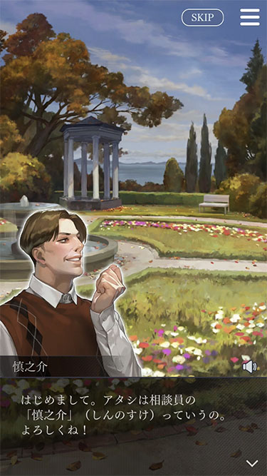 あなたと同じ施設の相談員。公園にいることが多く、ファッションや美容などの話題が多い。また、恋愛にも、とても関心が高く、恋愛に関する質問やアドバイスをしてくれる。