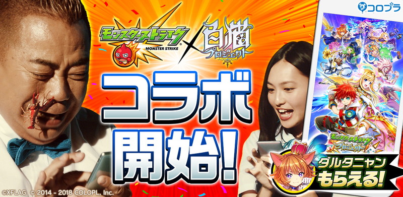 『白猫プロジェクト』にて、『モンスターストライク』とのコラボ企画“モンスターストライクプロジェクト”が本日11月22日より開催。出川哲朗さんと北村優衣さんが出演するコラボCMが先行公開された。