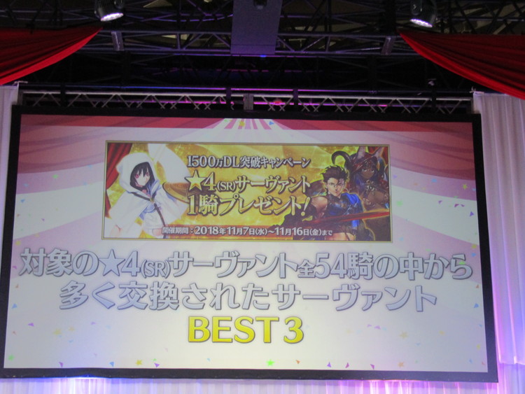 次は“1500万DL突破キャンペーンの星4サーヴァントプレゼントキャンペーンで、多く交換されたサーヴァント”の順位が発表に。結果は以下の通り。