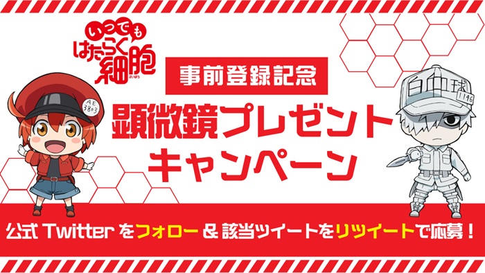『はたらく細胞』初のアプリゲームにて顕微鏡がその場で当たるTwitterキャンペーン開催