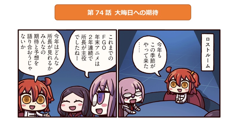 iOS/Android用アプリ『Fate/Grand Order(FGO)』の公式サイトで、漫画家・リヨ氏によるWEBマンガ『ますますマンガで分かる! FGO』の第74話“大晦日への期待”が公開された。