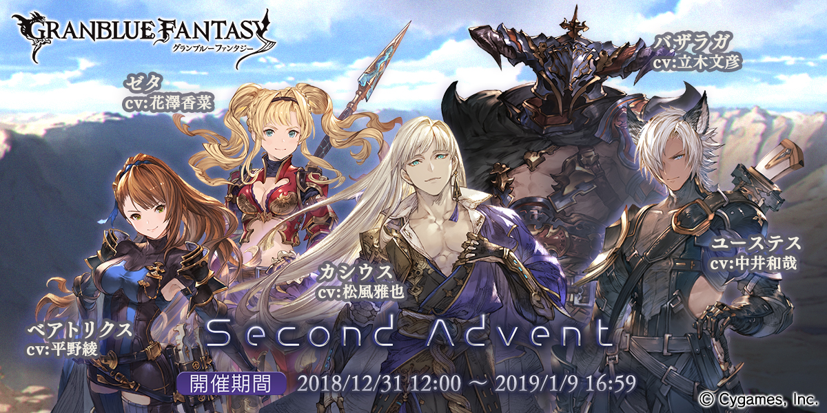iOS/Android用アプリ『グランブルーファンタジー』で新イベント“Second Advent”が12月31日19:00~2019年1月9日16:59の期間限定で開催される。