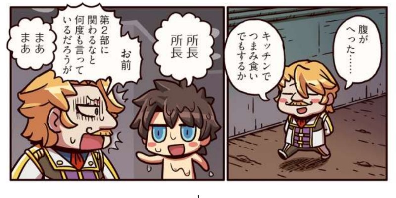 『ますますマンガで分かる! FGO』キッチンに向かうゴルドルフ新所長。そこに現れたのはずぶ濡れの男主人公!?