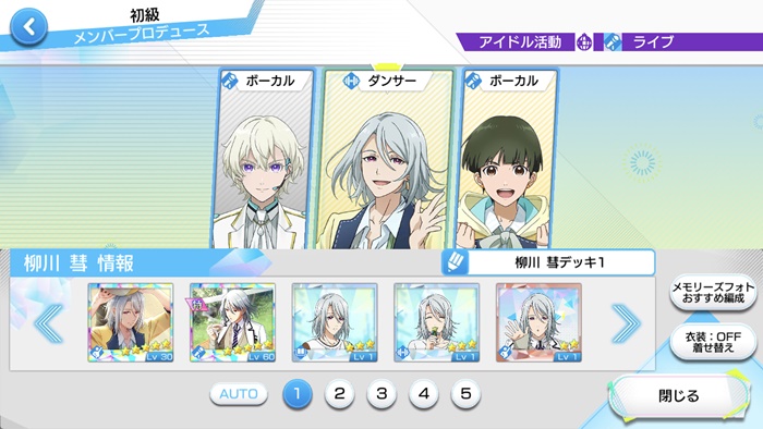 イベントチャプターの“メンバープロデュース”マスでは、一緒にクリアを目指すアイドルを自由に選択することができる。チャプターの最後にあるアイドル活動では、チャプター内のレッスンで得られる能力値を使用するので、レッスンの効果を高めるために、高レアリティ・高レベルの“メモリーズフォト”を所持しているメンバーを選択しよう。
