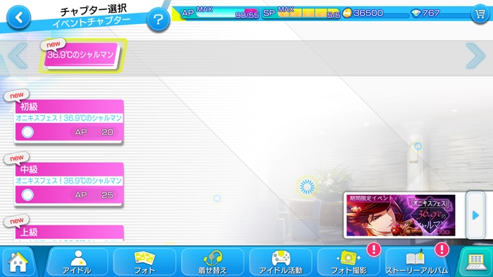イベントチャプターには、初級、中級、上級の3つのチャプターが用意されている。まずは初級からチャレンジするのがおすすめ!
