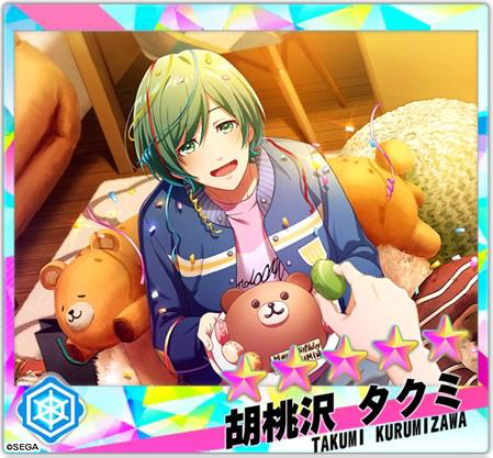 “★5【忘れん坊のバースデー】胡桃沢タクミ”のメモリーズフォトを1回上限突破すると“タクミバースデー限定ミッション”クリアとなり、ちびメンに着せ替え可能な“タクミのお誕生日衣装”を受け取ることができる。
