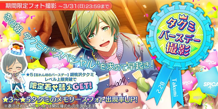 ゲーム内では“タクミバースデー撮影”を開催中!