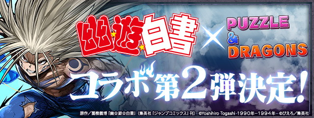 『パズル&ドラゴンズ』にて、『幽☆遊☆白書』とのコラボイベント第2弾が3月11日より開催される。
