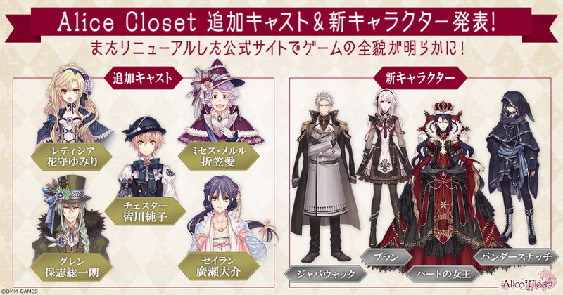 本日3月6日『Alice Closet』公式サイトの大幅リニューアルが行われ、一部キャラクターのサンプルボイスが公開された。