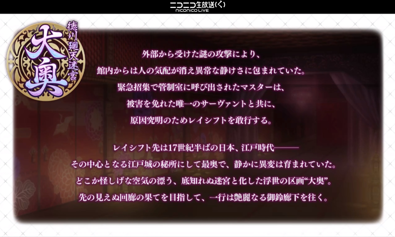 AnimeJapan2019内にてiOS/Android用アプリ『Fate/Grand Order(FGO)』』のスペシャルステージが実施され、期間限定イベント“徳川廻天迷宮 大奥”の最新情報が公開された。