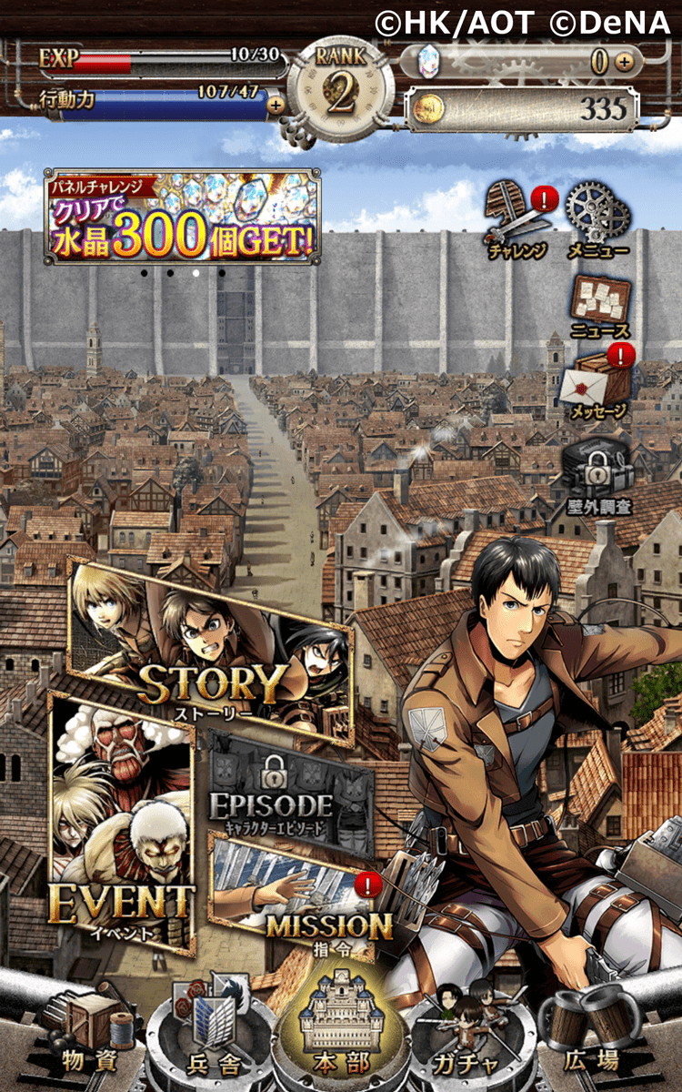 ©諫山創・講談社/「進撃の巨人」製作委員会 ©DeNA Developed by KAYAC