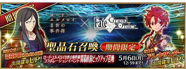 “ロード・エルメロイII世の事件簿コラボレーションイベント開幕直前ピックアップ召喚”