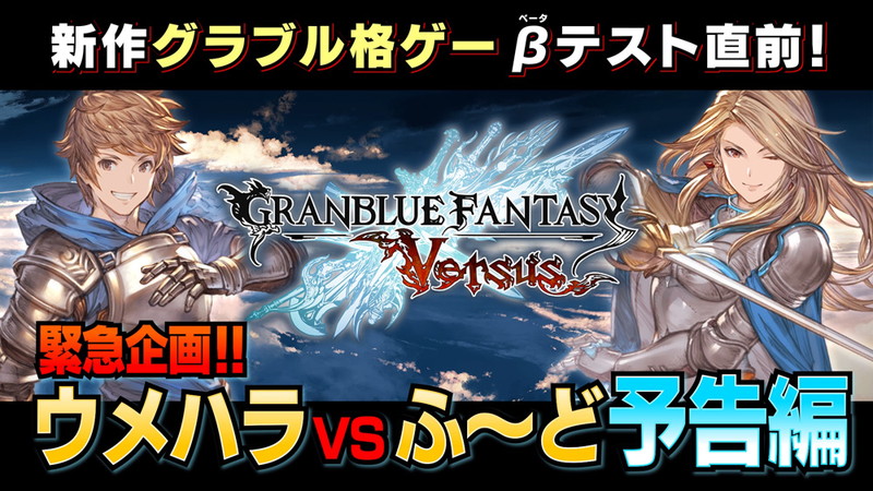 クローズドβテスト開催にあたり、日本を代表する格闘ゲームのプロプレイヤーである梅原大吾選手とふ~ど選手が 『グランブルーファンタジー ヴァーサス』を一足先に体験し、本気で対戦する“ガチマッチ”が実現決定! そのティザームービーが公開された。