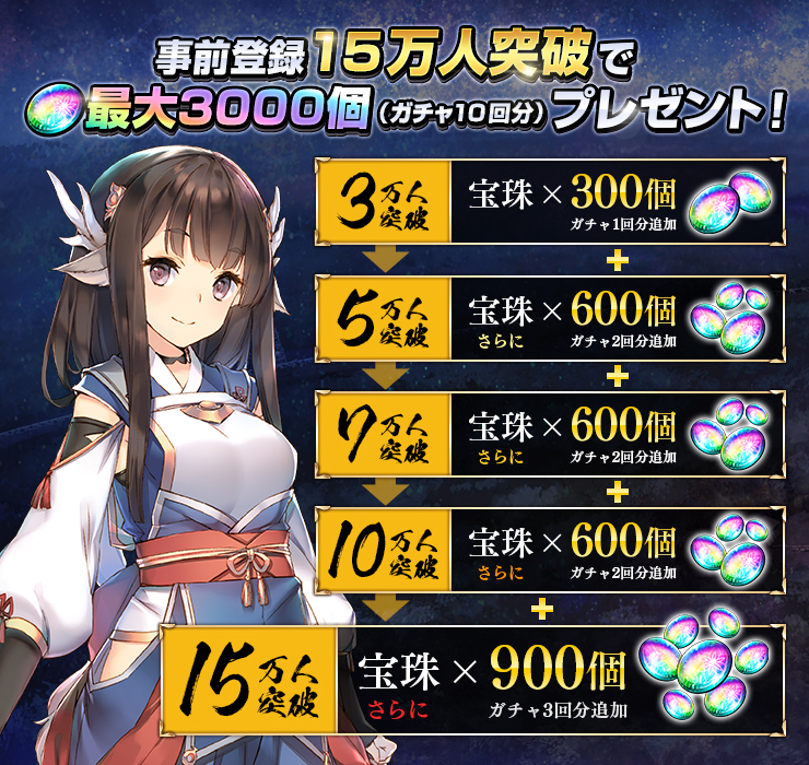 【15万人突破特典】宝珠×900(ガチャ3回分)※トータル10回分となります。