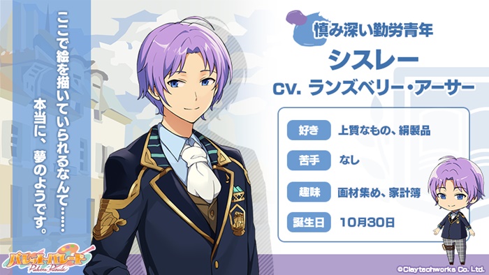 ルノワール(CV:柿原徹也)、モネ(CV:羽多野渉)、シスレー(CV:ランズベリー・アーサー)、バジール(CV:増田俊樹)、マネ(CV:新垣樽助)の5人の新サンプルボイスを公式サイトにて公開。キャラクターにより深みを与えるキャストのボイスを堪能しよう。