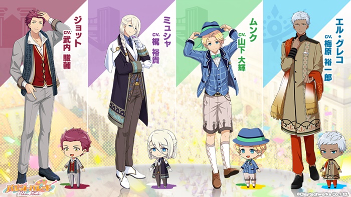 2019年夏リリース予定のスマートフォン向け芸術家育成タイムライズゲーム『パレットパレード』より、山下大輝さん、梶裕貴さん、武内駿輔さん、梅原裕一郎さんが出演する“近代・ゴシック・マニエリスム”キャラクターのセレクションイラストと新サンプルボイスが公開。さらに、『パレパレ』リニューアルスタートを記念して、“Re:Beginningプレゼントキャンペーン第4弾”も実施される。
