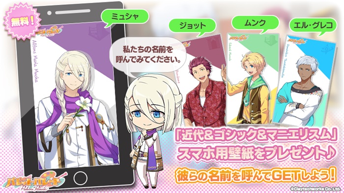 ムンク、ミュシャ、ジョット、エル・グレコの4人の限定スマホ用壁紙をがもらえる。