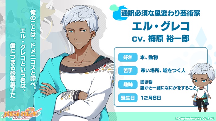 エル・グレコの新サンプルボイスは公式サイトで公開中:https://paletteparade.com/character.php?c=elgreco