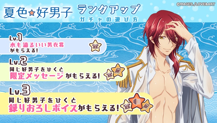 【Lv.2】同じ好男子をもう一度引くと、夏色☆好男子限定メッセージをゲット!