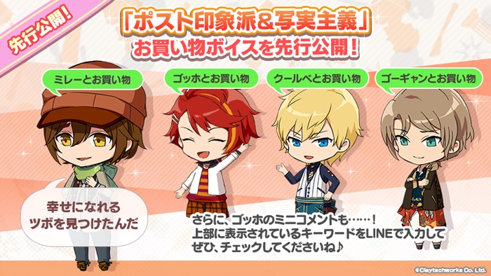概要:ゴッホ、ゴーギャン、クールベ、ミレーの4人の“お買い物”先行ボイスを公開!