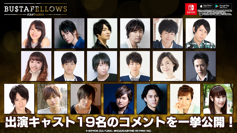 文化放送エクステンドの新作ゲーム『BUSTAFELLOWS(バスタフェロウズ)』より、出演キャスト19名のコメントが一挙公開された。