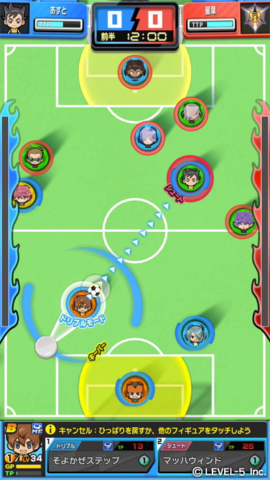 操作は簡単! 自分のフィギュアを引っ張って弾き、相手をたいあたりで吹っ飛ばしながらボールを運ぼう! もちろん大迫力の必殺技も完全再現! 必殺技を駆使しながら、グッと引いてスコォォォォン! の直感操作で勝利を掴もう!