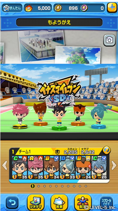 『イナズマイレブン SD』は、フィギュアになった『イナズマイレブン』シリーズのキャラクターたちを集めてチームを作り、そのフィギュアを使ってサッカーをする “超次元トイ・サッカー”ゲーム。フィギュアをはじいて、たいあたりで相手を吹っ飛ばせ!