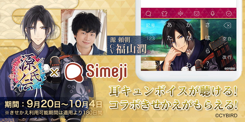 福山 潤の耳キュンボイスも聴ける! 『イケメン源氏伝』×『Simeji』コラボ実施