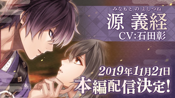 『イケメンシリーズ』の最新作『イケメン源氏伝 あやかし恋えにし』は、石田 彰さんがキャラクターボイスを務める源義経の本編配信を2019年11月21日(木)に行うことを発表しました。これを記念し様々なキャンペーンをゲーム内外で実施します。