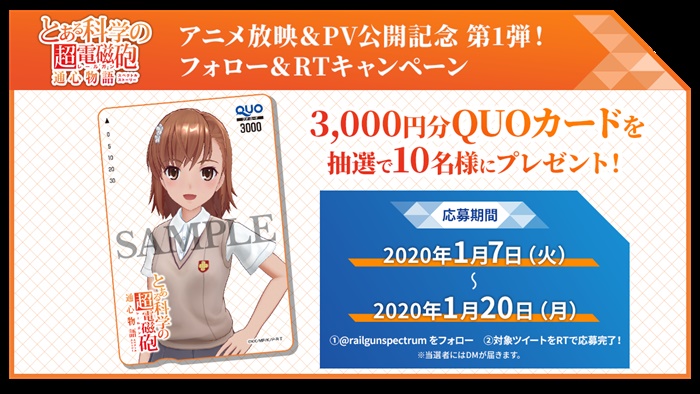 TVアニメ『とある科学の超電磁砲T』放映直前を記念して、フォロー&リツイートキャンペーンを開催。アプリ公式Twitterアカウントをフォローして、キャンペーンツイートをリツイートすると、抽選でオリジナルQUOカード(3,000円分)が10名に当たる。