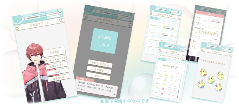 おはようのアラームからおやすみの瞬間まで、あなたの生活に寄り添う数々のツールが用意されている。特に入浴は入浴執事“フロピスト”が全力であなたをサポート!