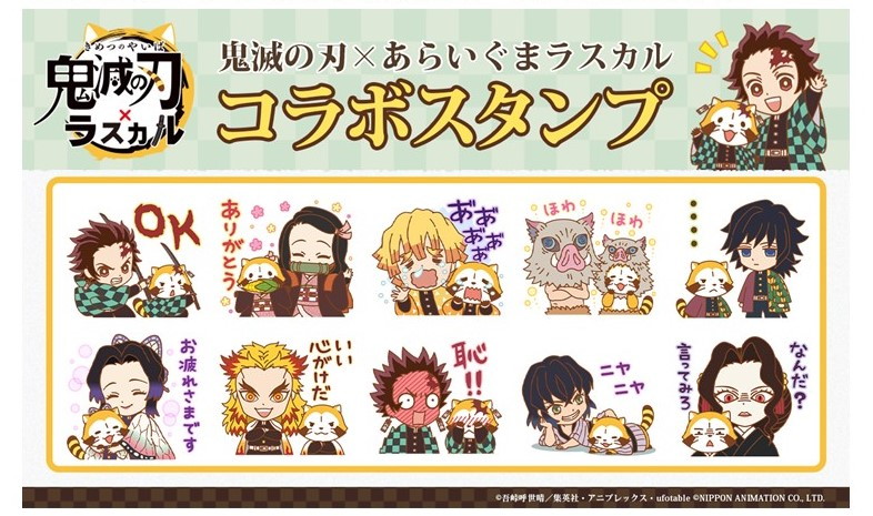 『あらいぐまラスカル』とアニメ『鬼滅の刃』コラボレーションによるLINEスタンプ“鬼滅の刃×ラスカル コラボスタンプ”の配信が、本日1月16日より開始された。