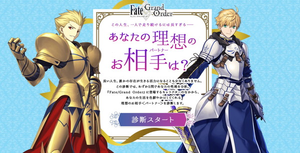 スマートフォン向けFateRPG『Fate/Grand Order』とマイナビニュースがコラボレーション。ゲームに登場するキャラクターとの相性診断ができる「『Fate/Grand Order』あなたの理想のお相手<パートナー>は︖」という特設サイトを開設し、3月13日(金)よりサービスを開始した。