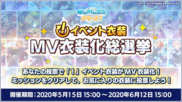 「!」時代にイベントで登場した各ユニットの衣装が、投票で3D化される夢の企画! 投票は各ユニットごとに行われ、どのユニットもそれぞれ投票で1位に選ばれた衣装がMV衣装になります。