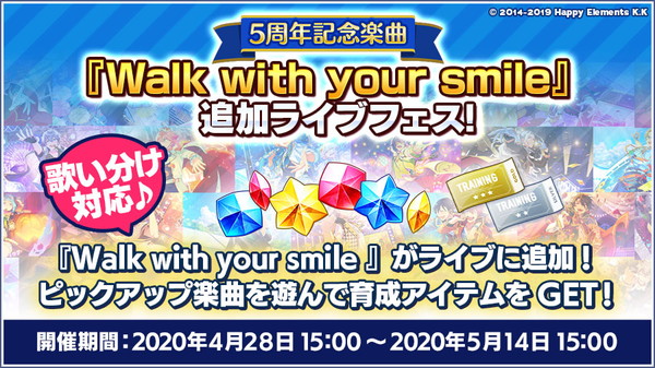 そして楽曲追加から5/14までの期間中は「Walk with your smile」追加に伴うライブフェスも開催!