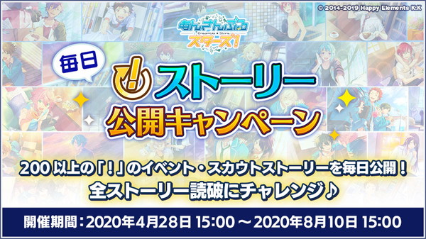 「!」がまだ1つだった頃の、延べ200以上のイベントおよびスカウトの期間限定ストーリーを毎日日替わりで全話公開! 今こそ全ストーリー読破し、約5年間に及ぶ『あんさんぶるスターズ!』の軌跡をともに歩いてください!!