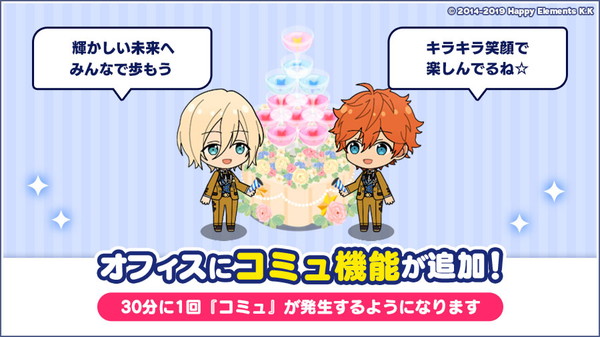 オフィス内でアイドルたちが言葉を交わす「コミュ」が発生するようになりました! アイドルたちのプライベートな一幕が見られるかもしれません♪