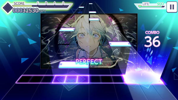 ▲美麗なMVに思わず気を取られてミスすることも……。ミスをするとライフが減るので注意!