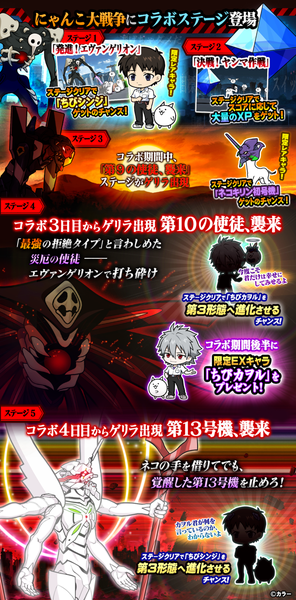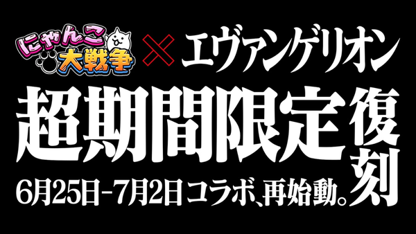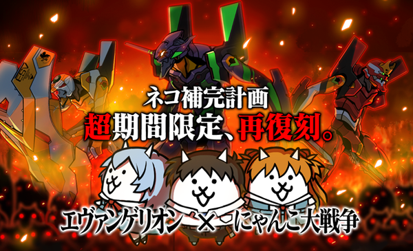 スマートフォン向けゲームアプリ『にゃんこ大戦争』にて、『エヴァンゲリオン』との復刻コラボレーションイベントが開催。6月25日(木)11:00よりスタートした。