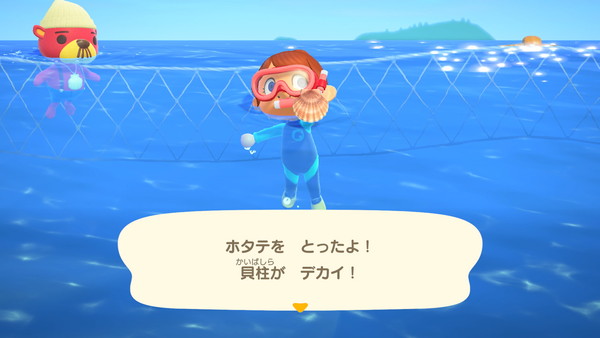 また、海で「ホタテ」がとれると、すかさず現れてホタテを欲しがる「ラコスケ」の姿が。ホタテをあげると、お礼をもらえるのだそう。