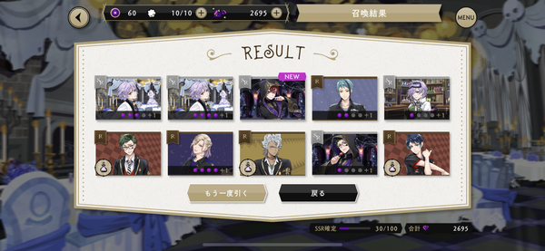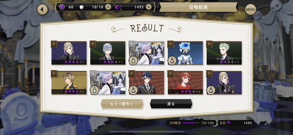 30連目では、SR式典服のリドルくんも初引きに成功! リドルくんも、今回の「ゴースト・マリッジ ~運命のプロポーズ~」に大きく関わってくるキャラクターです。