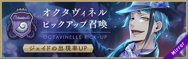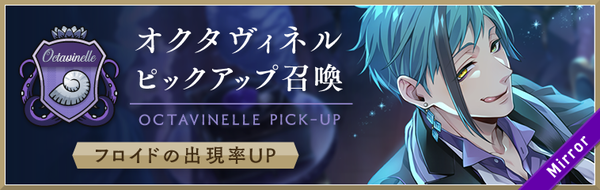 「オクタヴィネル ピックアップ召喚」では、 ピックアップ対象のキャラクターの提供割合が、 同じレアリティの他キャラクターよりもアップいたします。