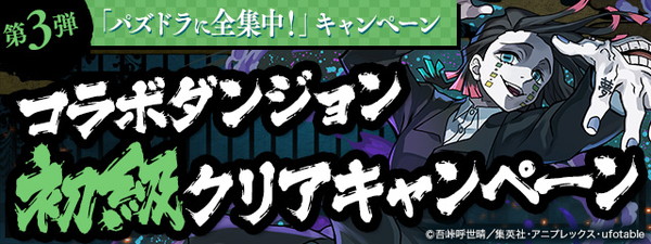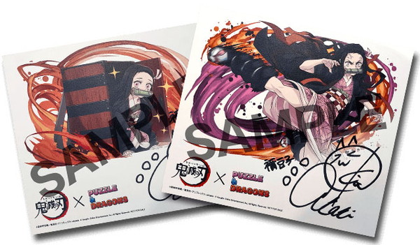 さらに、コラボ開催を記念した「パズドラに全集中!キャンぺーン」第2弾「サイン色紙プレゼントツイートキャンペーン」と第3弾「コラボダンジョン初級クリアキャンペーン」が実施。TVアニメ『鬼滅の刃』に出演の3名の声優のサイン色紙や『鬼滅の刃』のキャラクターグッズなどがプレゼントされる。