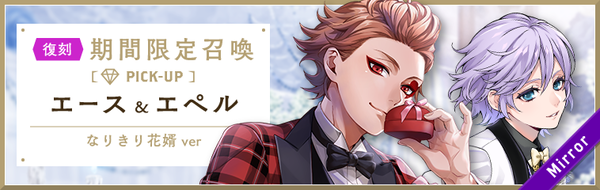 本召喚では、期間限定のSSR エース[なりきり花婿]とSR エペル[なりきり花婿]が登場。「復刻 ゴースト・マリッジ 期間限定召喚 エース&エペル編」では、下記ピックアップ対象のカードの提供割合が、同じレアリティの他カードよりもアップする。