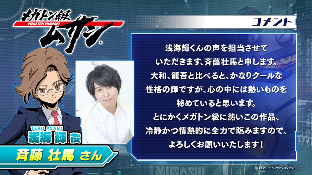『メガトン級ムサシ』メインキャストの増田俊樹さん(一大寺大和役)、斉藤壮馬さん(浅海輝役)、武内駿輔さん(土方龍吾役)3名によるキャストコメントが公開!
